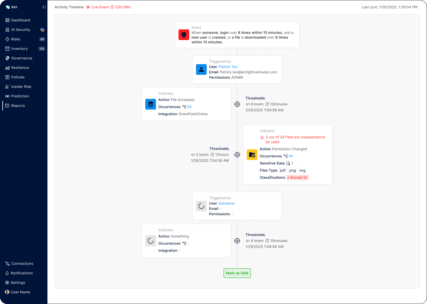 Traditional DLP solutions react after data is already at risk. Ray Security’s predictive data security platform enables to: